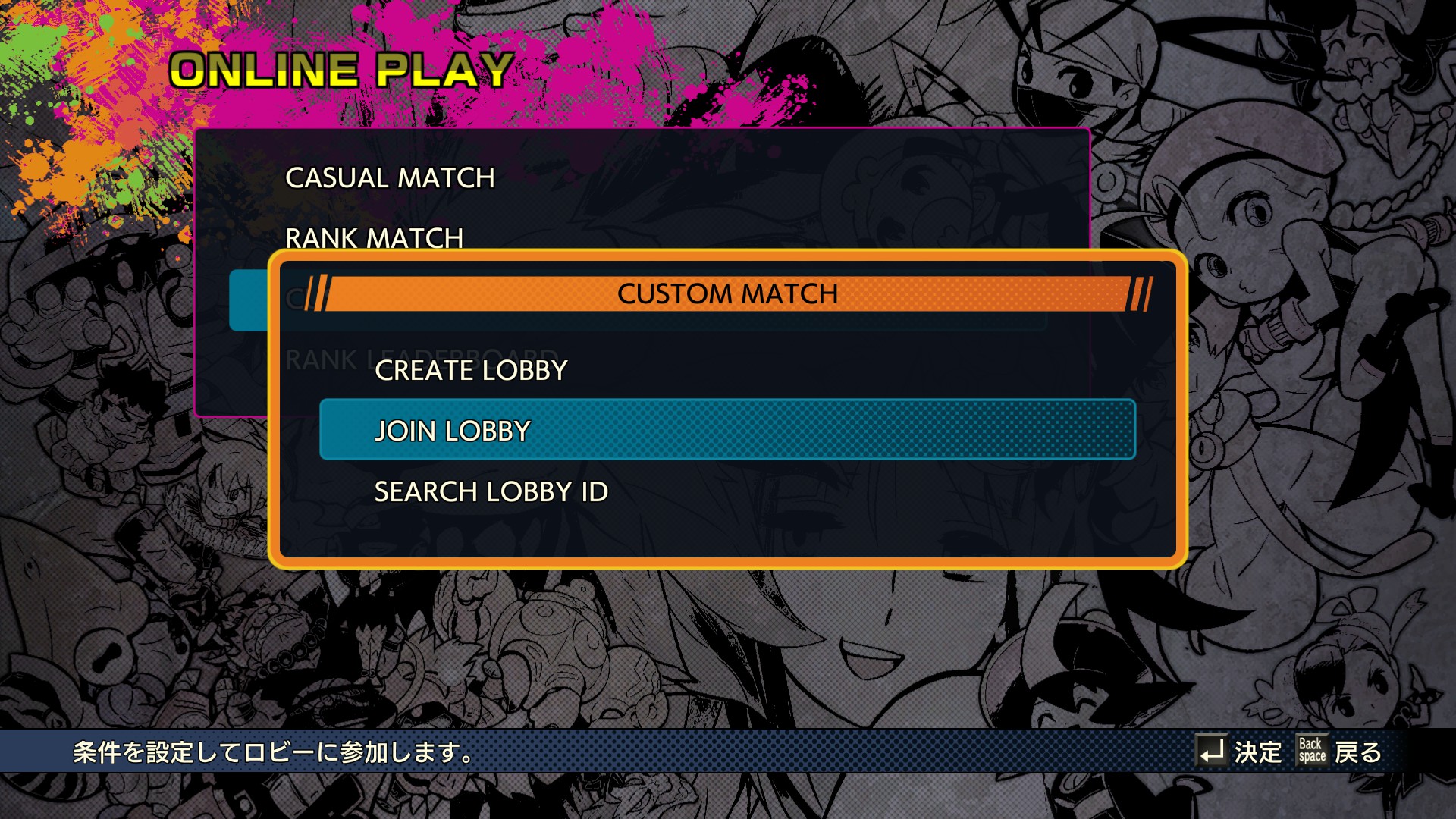 ロビー検索設定が表示される。この後決定ボタンを押すことで、カスタムマッチのルームが検索される仕組みですが、ここに落とし穴があります。